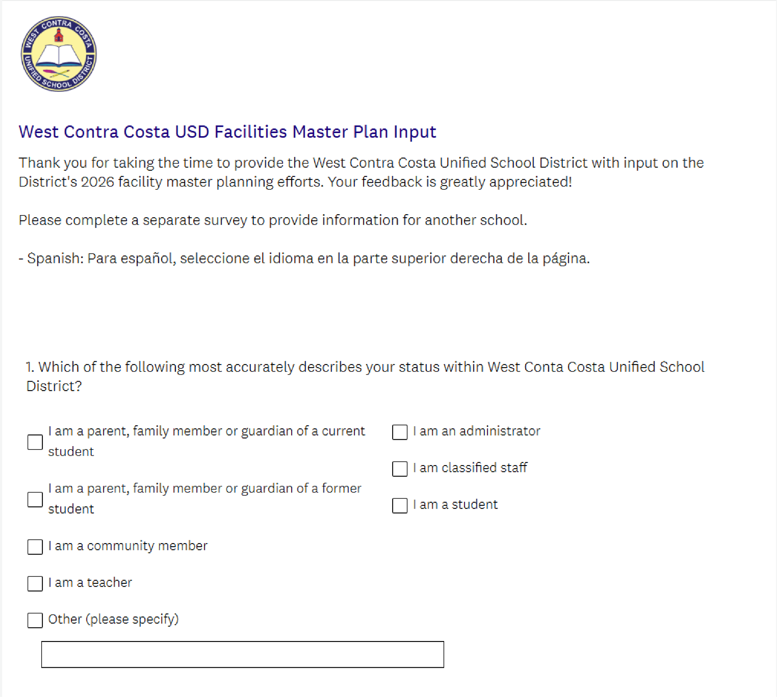 Facilities Master Plan Community Survey